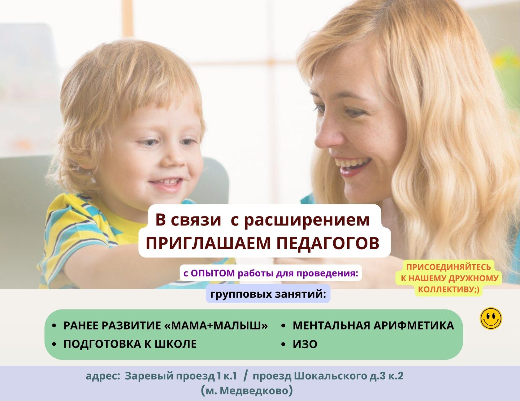 В детский центр в связи с расширением требуются педагоги.